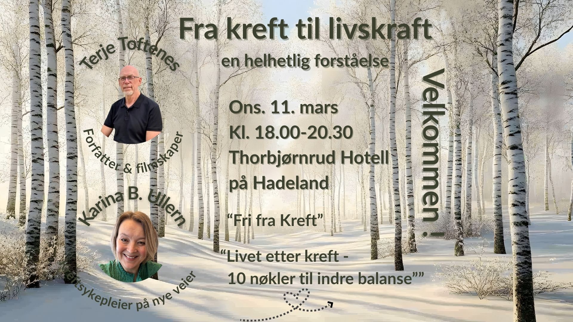 Denne kvelden samler to foredragsholdere med komplementær kompetanse – fra personlig erfaring, vestlig medisin og integrert/komplementær medisin – med et felles ønske om å styrke menneskers forståelse av egen helse og mulighetene for aktiv deltakelse i egen helbredelsesreise.